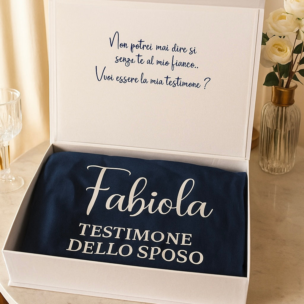 Stai per sposarti e vuoi condividere con le persone che ami il grande giorno? La nostra Scatola Regalo per Damigella/Testimone personalizzata è Il Regalo Perfetto per un Giorno Speciale!