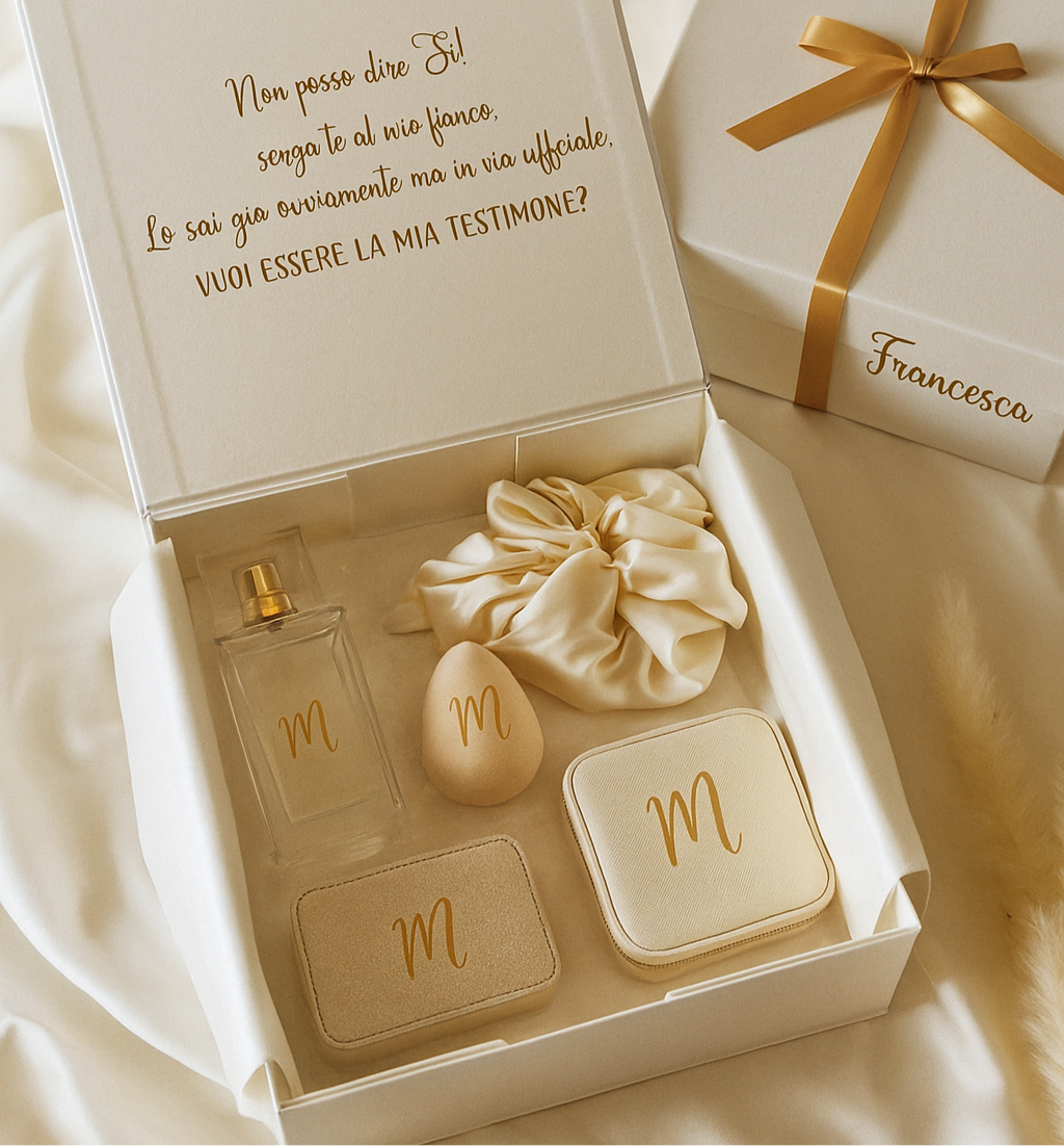 La Box Testimone/Damigella è pensata per rendere speciale un momento unico, con dettagli raffinati e personalizzabili.