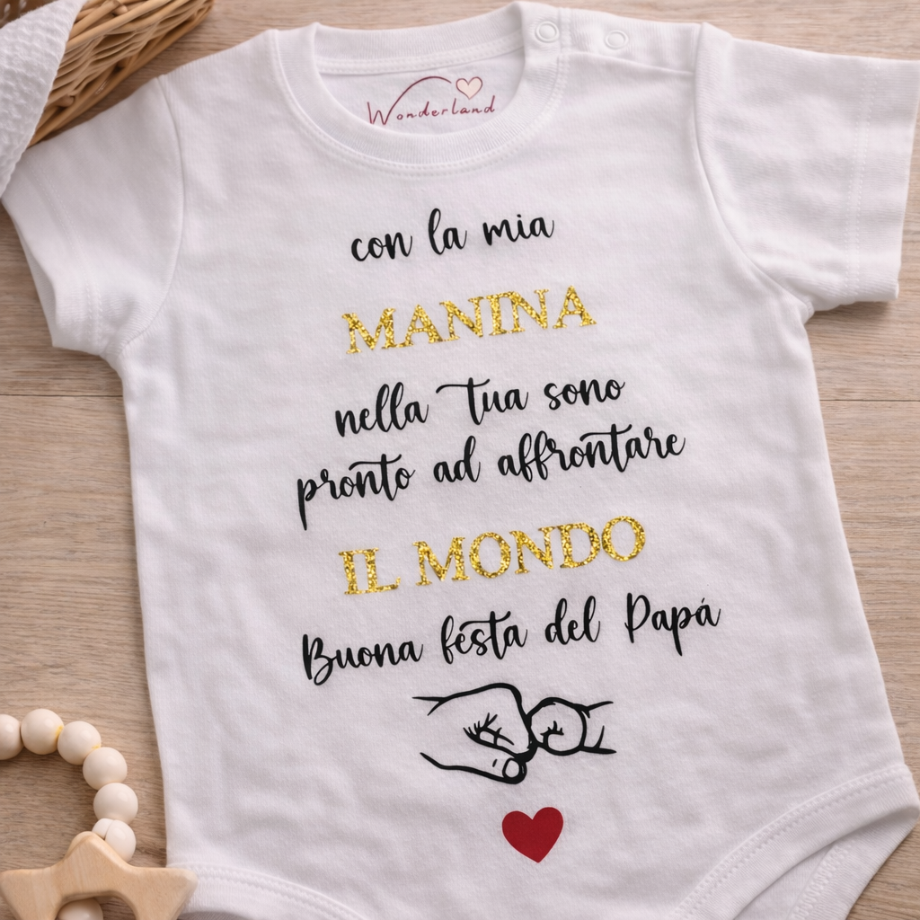 Il nostro body personalizzato per papà è pensato per celebrare uno dei legami più speciali che esistano: quello tra un papà e il suo bambino. Perfetto per la prima Festa del Papà, per un annuncio speciale o semplicemente per emozionarlo ogni giorno.